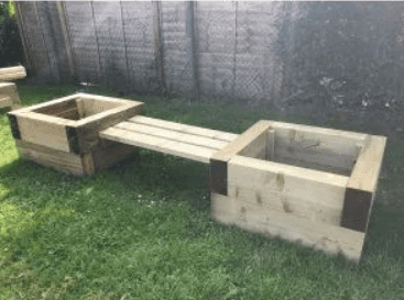 | The Double Square Sleeper Planter with Joining Bench offers children an engaging resource for outdoor activities. The sturdy nature of the planter and bench provides a reliable and durable space for children to engage in various outdoor activities, encouraging in a natural environment for social interaction and outdoor learning. L2400 x D800 x H400mm. |