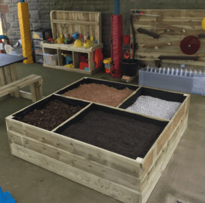 The Large Square Texture Trough is a comprehensive and adaptable play resource designed to accommodate a variety of textures and materials alongside Mud Kitchens. The spacious compartments of the trough allow for the storage of a wider range of textures, promoting diverse sensory experiences and imaginative exploration. The Large Square Texture Trough fosters creativity, fine motor skill development, and open-ended play, providing a dynamic and stimulating space for children to engage with an extensive array of textures and materials alongside their mud kitchen activities. L1200 x D1200 x H450mm.