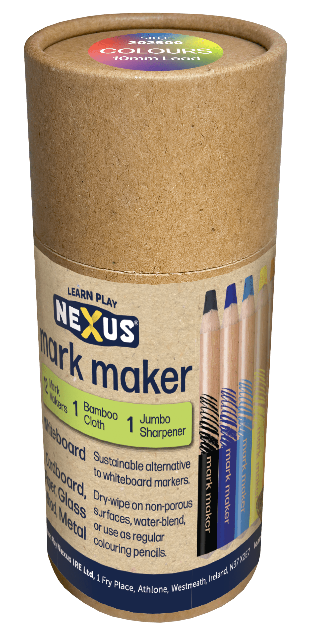 Your go-to resource for everything mark making! These innovative pencil-lead technology markers offer a sustainable alternative to traditional whiteboard pens. Water-soluble and biodegradable, they minimise environmental impact and sharpen to shavings for reduced waste. They wipe clean from non-porous surfaces like whiteboards and glass and also work on paper, wood, and much more.