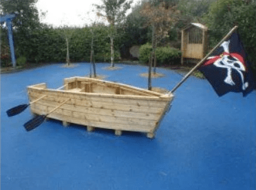 | This mini pirate ship fosters imaginative and cooperative play, encouraging children to engage in pretend play, social interaction, and creative storytelling. The pirate ship provides a versatile and stimulating platform for children to explore historical concepts, develop social skills, and foster imaginative expression in a dynamic and interactive play environment. L2400 x D1200 x H800mm. |