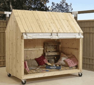 Introducing the Mobile Snug—a delightful playhouse on wheels! This cozy retreat allows children to gather with friends, listen to stories, or simply take a break from the hustle and bustle of the playground. L1200 x D1200 x H1800mm.