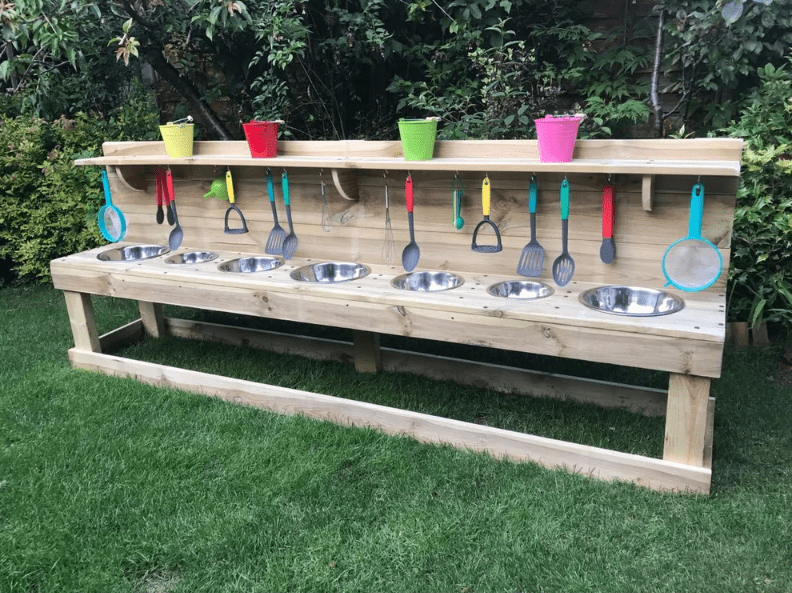This Potion Station is an expansive and interactive workbench designed to provide a comprehensive and engaging area for children to immerse themselves in imaginative sensory play and exploration. This potion station, with a 2 m long worktop, features a variety of different sized bowls, allowing children to mix and explore different sensory ingredients, fostering creativity, experimentation, and tactile play. The spacious design offers the perfect space for children to engage in hands-on activities, promoting fine motor skill development, scientific exploration, and imaginative discovery. L2000 x D600 x H450mm.