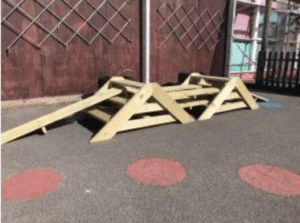 | Introducing the A-Frame Steps and Decking Lengths, an engaging and versatile play resource designed to promote children’s confidence and balance as they use the decking lengths as ramps and bridges. The combination of the A-frame steps and decking lengths offers an engaging platform for children to explore and enhance their balance and coordination, promoting active and imaginative play. L1600 x D800 x H600mm. |